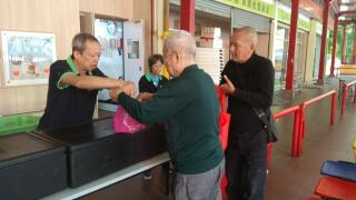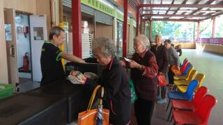 东头社区厨房派发岩盐给一众服务使用者,让他们一起品尝岩盐的味道。