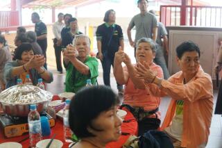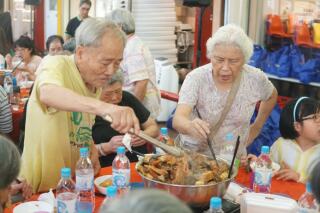 2019年3月22日,一群长者参与「艺恒惜福喜迎春盘菜宴」。活动期间,长者围桌享用盘菜,气氛热闹。