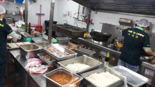 东头社区厨房派发由浅水湾一食肆所捐赠的剩食