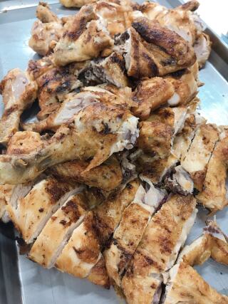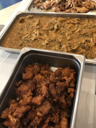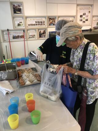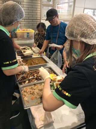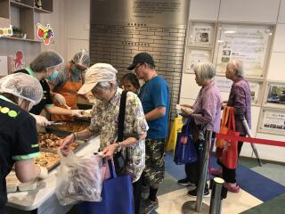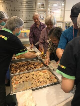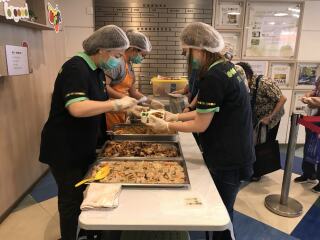 东头社区厨房收到由浅水湾一食肆所捐赠的剩食,把剩食翻热后,再提供自助餐形式的服务予我们的服务使用者。