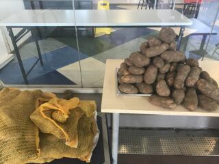 东头社区厨房收到由有心人捐赠一批来自美国的新鲜薯仔给附近的居民。