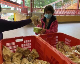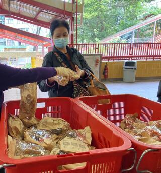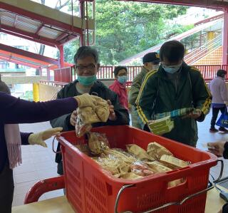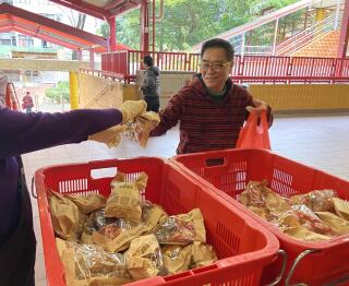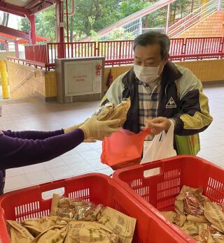 为庆祝新春,东头社区厨房派发由有心人捐出的角仔。
