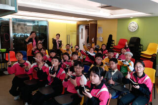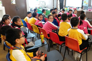 香港普通话研习社科技创意小学师生参观齐惜福油塘社区厨房。
