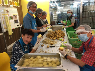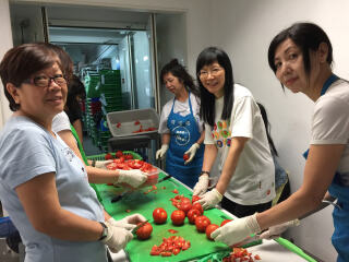 齐惜福社区厨房成员为有需要的基层弱势社群制作爱心饭盒,需要处理大量的食材。要确保把食物安全及准时送到受众手中,涉及大量的人手需求,各位义工朋友的支持是我们的强大后盾!他们帮忙处理食材,包括整理从街市收集的蔬菜,令受惠者得以享用营养丰富的饭餐。