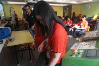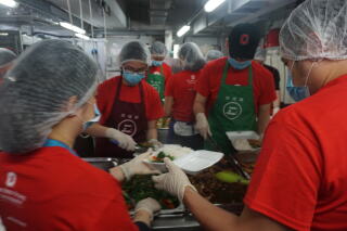 俄亥俄州立大学的旧生参观油塘社区厨房。