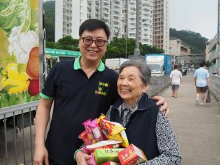 2016年5月19日,「齐惜福」于平田邨派发零食。