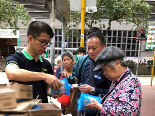 2018年3月20日,「齐惜福」于大埔派发炭烧猪肉干和芝士棒,感谢善心供应商支持善用食物资源。街坊当晚看电视时可以加添零食呢!