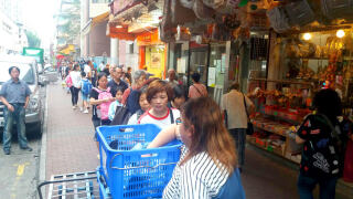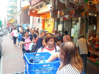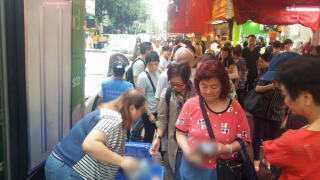 2018年4月24日,「齐惜福」于深水埗派发鸟结糖和曲奇。