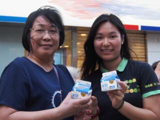 2018年8月8日,「齐惜福」于荃湾派发盒装牛奶。