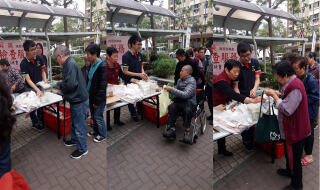 2019年2月9日,「齐惜福」于深水埗泽安邨派发由Marks & Spencer捐赠的食物。