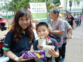 於海丽村派发玛莎捐赠的汽水及零食