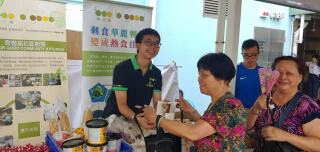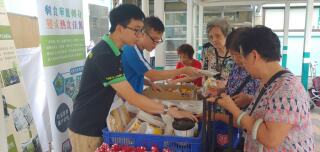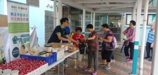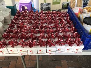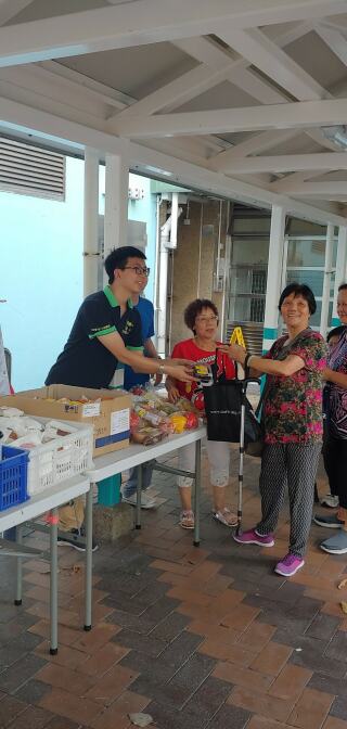 我们到竹园南邨向居民派发杯面、由马莎捐赠的面包和朱古力。