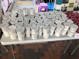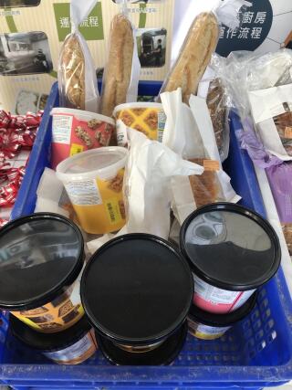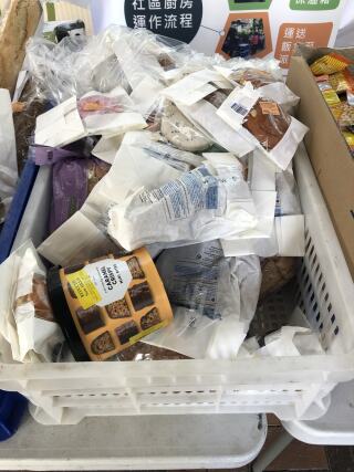 於竹园南邨向居民派发杯面、由马莎捐赠的面包和朱古力