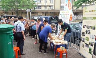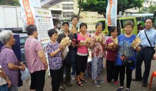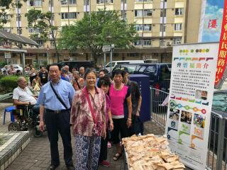 我們於油麗邨派發熱食飯盒和捐贈生果。