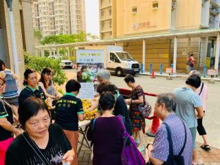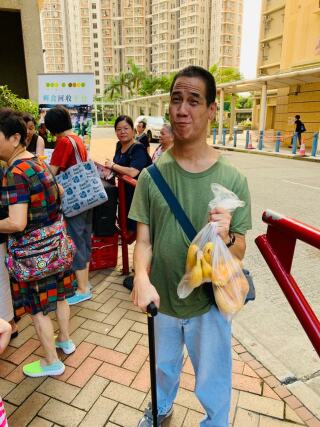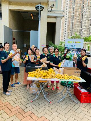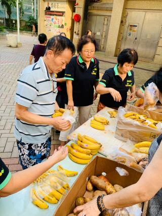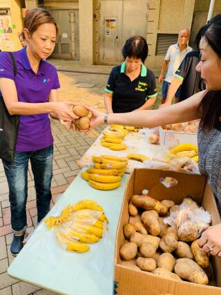 我们于油丽邨派发香蕉和由Maison Eric Kayser捐赠的面包。