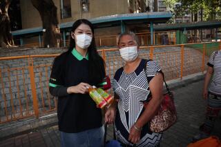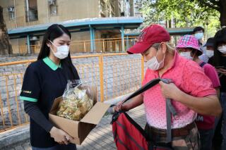 我们于山景邨邨派发由嘉顿捐赠的幸运曲奇。