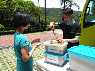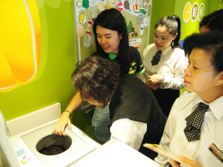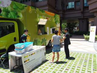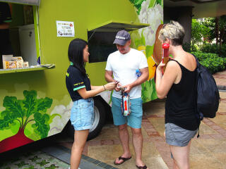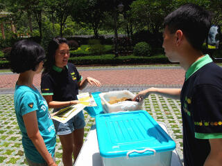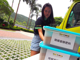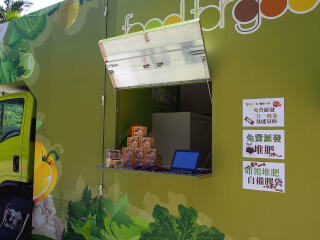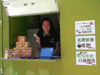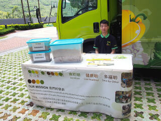 2017年7月15日,「齐惜福展览教育车」于愉景湾停泊。教育车内有宣传珍惜食物的资讯,亦展示减少厨余的方法。工作人员更向市民派发从厨余制成的堆肥。