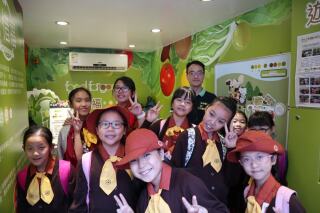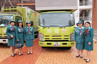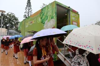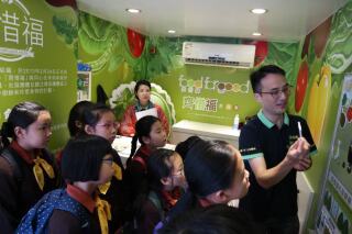 「齐惜福教育车」于香港女童军週年大会操活动停泊,宣传珍惜食物的理念。
