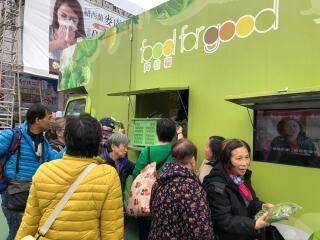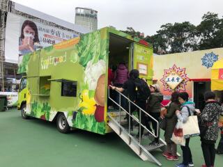 「齐惜福教育车」于第53届工展会会场停泊,宣传珍惜食物的理念。