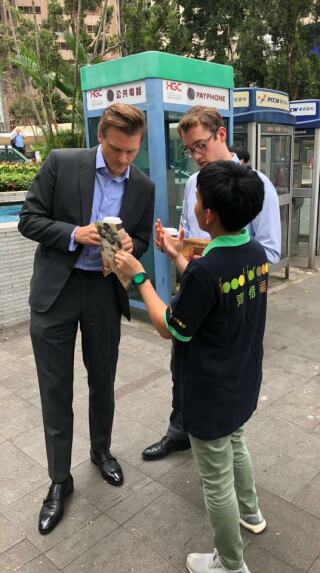 「齐惜福教育车」于中环皇后像广场停泊。教育车内有游戏,宣传珍惜食物的理念,亦展示减少厨余的方法。此外我们还派发捐赠面包糕饼和超级食物。