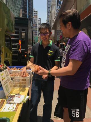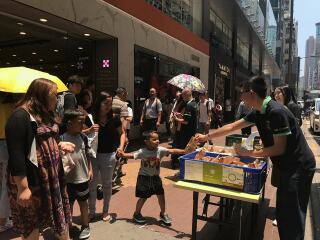 「齐惜福教育车」于旺角朗豪坊停泊。教育车内有游戏,宣传珍惜食物的理念,亦展示减少厨余的方法。此外我们还派发捐赠面包糕饼和超级食物。