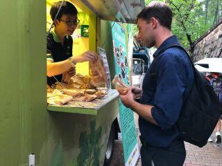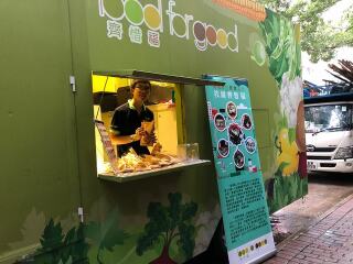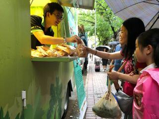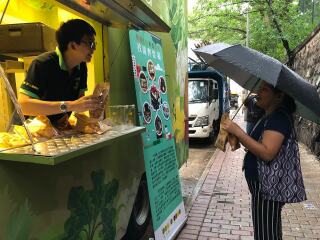 「齐惜福教育车」于坚尼地城停泊。教育车内有游戏,宣传珍惜食物的理念,亦展示减少厨余的方法。此外还有派发面包。