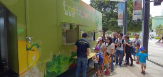 「齐惜福教育车」于赤柱美利楼停泊。教育车内有游戏,宣传珍惜食物的理念,亦展示减少厨余的方法。此外还有派发面包。