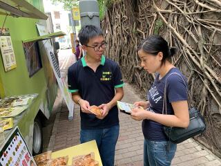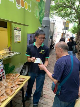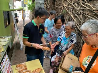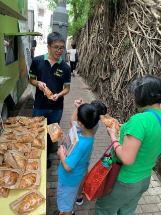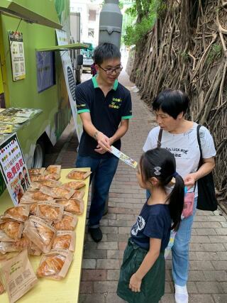 「齐惜福教育车」于坚尼地城停泊。教育车内有游戏,宣传珍惜食物的理念,亦展示减少厨余的方法。此外还有派发面包。
