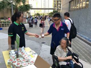 「齐惜福教育车」于深水埗停泊。教育车内有游戏,宣传珍惜食物的理念,亦展示减少厨余的方法。此外还有派发果冻。