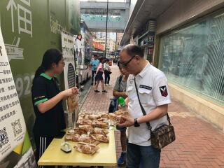 「齐惜福教育车」于荃湾停泊。教育车内有游戏,宣传珍惜食物的理念,亦展示减少厨余的方法。此外还有派发面包。