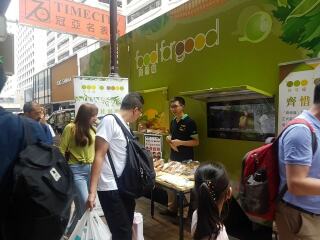 「齐惜福教育车」于尖沙咀广东道停泊。教育车内有游戏,宣传珍惜食物的理念,亦展示减少厨余的方法。此外还有派发牛角包。