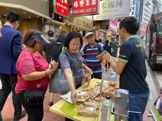 「齐惜福教育车」于铜锣湾停泊。教育车内有游戏,宣传珍惜食物的理念,亦展示减少厨余的方法。此外还有派发面包。