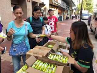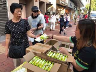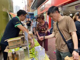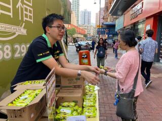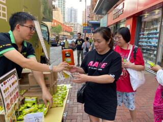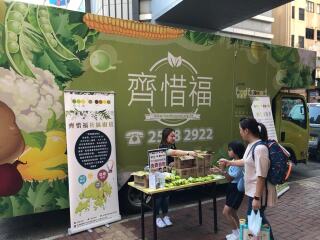 「齐惜福教育车」于荃湾千色店外停泊。教育车内有游戏,宣传珍惜食物的理念,亦展示减少厨余的方法。此外还有派发面包和蔬果。