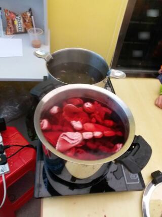 活動當日導師向參加者示範使用廚餘製作染料和利用製成的染料紮染布料,參加者隨後更可親自參與紮染過程。是次活動既可讓大家體驗紮染的樂趣,更可善用廚餘,推廣惜福和環保理念。