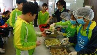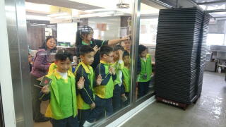 坪石邨天主教小學的學生來到我們油塘的廚房認識廚餘回收及處理剩食的知識,同時當了一天小義工,為老師和同學們服務。