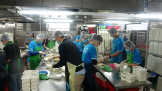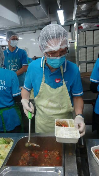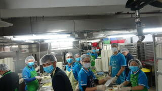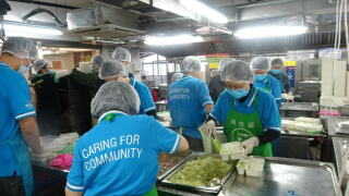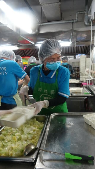 九龍倉置業的義工隊到訪我們油塘的社區廚房進行義工服務,為受眾準備食物。