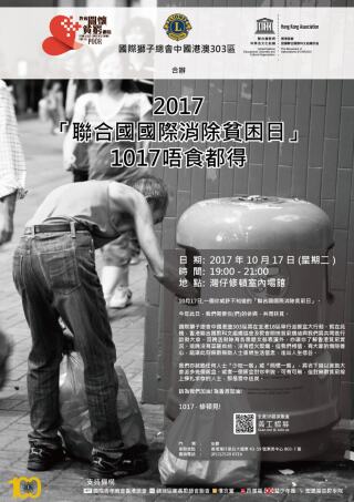 聯合國把每年的10月17日定為消除貧窮國際日,今年是這個國際日定立25週年的日子,本地有相關活動舉行,活動名為2017「聯合國國際消除貧困日」1017唔食都得,齊惜福是這項活動的其中一間支持機構。
