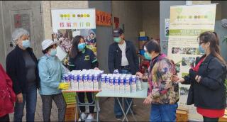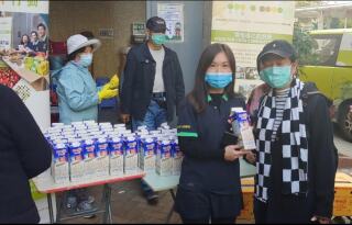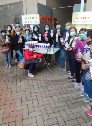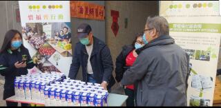 齊惜福於油麗邨派發有心人士捐贈的明治牛奶予該邨的邨民。