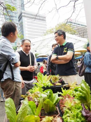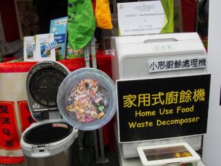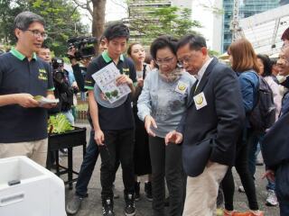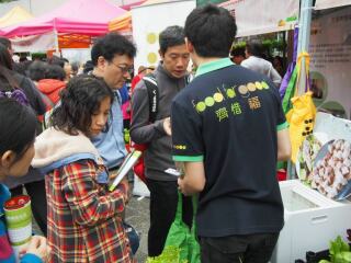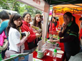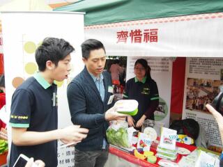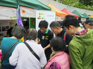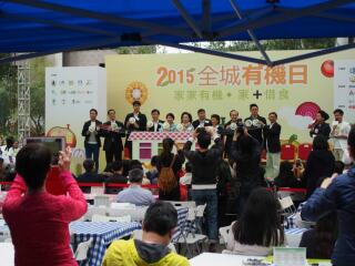 「齊惜福」於「全城有機日2015」推廣轉化廚餘為堆肥。