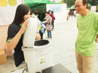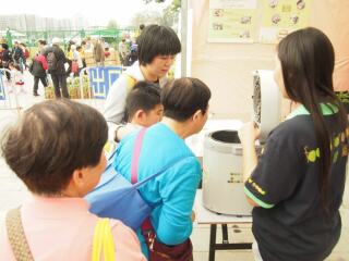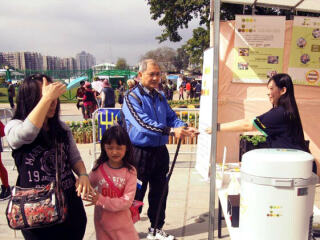 「齊惜福」於「香港北區花鳥蟲魚展覽2015」展示廚餘再造資訊。