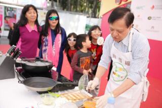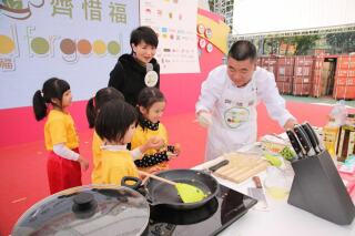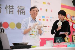 彩逸皇宮執行董事劉廣財和明星海鮮酒家(集團)行政總廚吳仲明於「名廚齊惜福」活動利用剩食炮製佳餚。