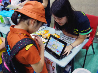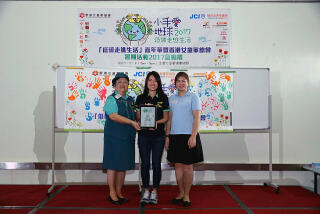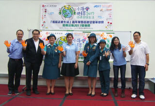 「齊惜福」於「小手愛地球2017—『低碳走進生活嘉年華』暨香港女童軍總會暑期活動2017啟動禮」介紹機構理念並分享處理廚餘和種植的心得。