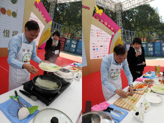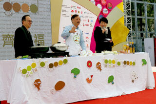 劉廣財先生於「名廚齊惜福」活動示範利用剩食炮製佳餚。