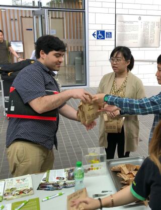 2019年4月12日是「香港科技大學黑客松」舉行的日子。活動期間,「齊惜福」在會場擺放教育車向學生宣傳綠色咨詢,更派發自家製牛角包和收集活動當日廚餘。感謝大會、義工和學生的支持。