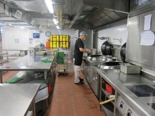 「齊惜福」發起人及贊助人梁唐青儀女士於2012年11月22日參觀禧福協會,了解該會的食物事工和廚房運作概況。