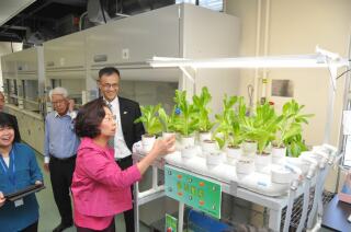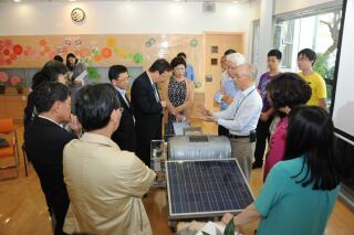 「齊惜福」發起人及贊助人梁唐青儀女士於2013年4月24日參觀香港專業教育學院(沙田),了解學院內環保設施的運作。