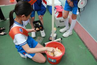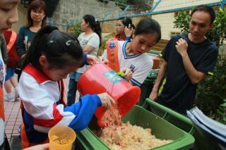 「齊惜福」安排 4 間小學代表參觀「天主教善導小學」,了解該校的環保綠化校園計劃並聽取「綠領行動」的代表介紹把午膳飯盒廚餘轉化堆肥的過程。