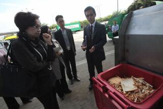「齊惜福」發起人及贊助人梁唐青儀女士於2013年7月2日參觀香港機場管理局,了解當局廚餘處理設施的運作。